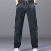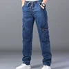 Pantalones vaqueros elásticos supersueltos para hombre, Pantalón recto de cintura alta, de gran tamaño, cintura elástica, entrepierna profunda
