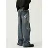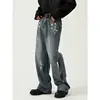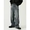 Poetry pantalones vaqueros ajustados de pierna ancha para hombre, Jeans de estilo coreano, rasgados, diseño con agujeros, para las cuatro estaciones