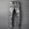 Pantalones vaqueros de moda para hombre, Jeans rasgados de estilo urbano americano, Retro, grises, desgastados, de diseñador, Hip Hop, Punk