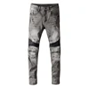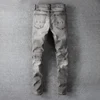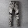 Pantalones vaqueros rasgados para hombre, ropa de calle Americana, de alta calidad, Retro, gris, Slim Fit, de motorista, diseñador empalmado, Hip Hop