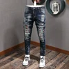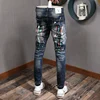 Pantalones vaqueros ajustados de alta calidad para hombre, Jeans elásticos de diseño de pintura, Hip Hop, empalmados