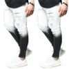 Pantalones vaqueros rasgados elásticos para hombre, Jeans ajustados, ropa de calle, color blanco degradado y negro, a la moda