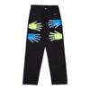 Pantalones vaqueros con bordado de parche de palma para hombre, Jeans casuales sueltos de pierna recta de tendencia Hip hop de calle Bf, estilo Harajuku