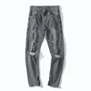 Pantalones vaqueros rasgados para hombre, Jeans Retro lavados, ajustados, estilo Harajuku, color gris oscuro, primavera y otoño, 2021