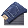 Pantalones vaqueros ajustados y cálidos para hombre, Jeans de negocios a la moda, gruesos, elásticos de lana, color negro y azul, invierno, 2021