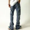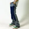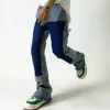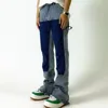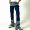 Pantalones vaqueros de retazos de inyección de tinta para hombre, Jeans rectos Retro desgastados, estilo Hip Hop, color azul, 2021