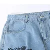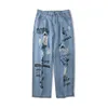 Pantalones vaqueros de pierna ancha para hombre y mujer, pantalón de estilo Preppy, con estampado de grafiti cruzado, holgado y recto, informal, coreano, 2021