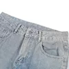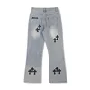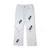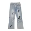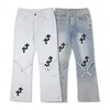 Pantalones vaqueros holgados y rectos para Hombre y mujer, Jeans de cuero sintético con bordado cruzado, color azul, estilo Hip Hop Punk, 2021