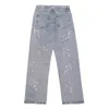 Pantalones vaqueros Retro con bordado cruzado para Hombre, Jeans rectos, desgastados, holgados, informales, estilo Hip Hop, 2021