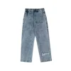 Pantalones vaqueros desgastados para hombre, Jeans de gran tamaño, con bordado de letras de estrellas, estilo Hip Hop, moda coreana