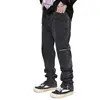 Pantalones vaqueros Retro lavados con cremallera para hombre, ropa de calle estilo Hip Hop, de algodón, color negro, 2021