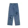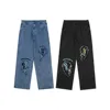 Pantalones vaqueros Retro lavados con bordado de parche para hombre, Jeans holgados de algodón, estilo Hip Hop, Kpop, 2021