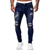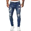 Dihope pantalones vaqueros elásticos para hombre, Jeans pitillo rasgados de Color puro, estilo Hip Hop, negro, para trotar, 2021