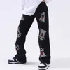 Pantalones vaqueros de gran tamaño para hombre, ropa de calle oscura, Ghost, diamantes de imitación, Punk, Hip Hop, rectos, informales, holgados, 2021