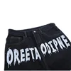 Pantalones vaqueros con estampado de grafiti para hombre, Jeans rectos de algodón rasgados con agujeros, informales, lavados, 2021