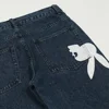 Pantalones vaqueros con estampado de grafiti para hombre y mujer, pantalón informal, holgado, de algodón, estilo Hip Hop, moda coreana