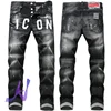 DSQ2 pantalones vaqueros elásticos con agujeros para hombre, ropa de calle con estampado de icono, color negro, dsq
