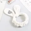 Diademas de maquillaje con letras bordadas para mujer y niña, bandanas elásticas de lana de Coral con Orejas de conejo, turbantes, accesorios para el cabello