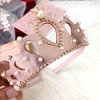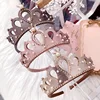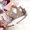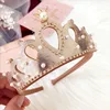 Remenda corona de fieltro brillante para niña, diadema lisa con perlas, diademas de estilo real para niño, corona de aleación de cristal brillante, diademas para bebé