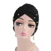 Turbante Hijab musulmán para mujer, gorro con flores grandes, decoración de perlas de imitación, moda