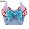 Turbante de lentejuelas de 5 pulgadas para niña y niño, turbante con orejas de ratón, diadema de verano con purpurina, accesorios para el cabello