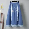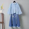 Vestido bordado chino tradicional de talla grande para mujer, Top Retro holgado con cuello en V y falda de algodón, novedad de 2021