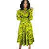 Vestido de oficina Retro de manga larga para mujer, traje de cintura alta, estampado, elegante, otoño e invierno, 2022