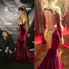 LORIE Dubai caftán Formal de noche para celebridades, vestidos de sirena de manga larga, elegantes, de terciopelo burdeos, apliques dorados, para fiesta y graduación
