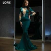 LORIE vestido de noche árabe con cuello alto y cuentas, manga larga, para baile de graduación, verde, Dubai, satén, para fiesta, saknie, wieczorowe, 2021