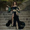 LORIE vestido de noche árabe con falda desmontable, apliques verdes, marroquí de soiré caftán, manga larga, terciopelo, vestidos de fiesta de graduación