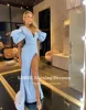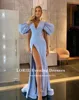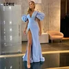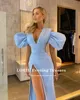 LORIE Vestidos de Noche sexys con escote en V, plisado, mangas cortas abullonadas, abertura lateral alta, Formal, árabe, para baile de graduación, vestido de fiesta de celebridades
