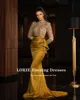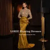 LORIE Vestidos de Noche árabes, cuello alto dorado, con cuentas, manga larga, sirena con lentejuelas, vestido de graduación, vestido de fiesta, abendkleider 2021 dubai