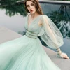 LORIE Vestidos De Noche De tul con cuello en V profundo, Vestidos De Fiesta De Noche con Espalda descubierta, cuentas hasta el suelo, fajas De princesa para Fiesta, 2021