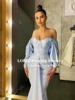 LORIE Dubai Vestidos de Noche de satén sin tirantes, plisados, mangas abullonadas, sirena árabe, vestido de fiesta de boda, Abiti Da Cerimonia