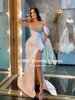 LORIE Vestidos De Fiesta De sirena con cuello en V profundo, ropa De noche De 2021, Sexy, con abertura lateral, cristales brillantes, para graduación, cumpleaños