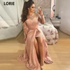 LORIE Vestidos de Noche polvorientos con cuentas de rosas para mujer, vestidos de satén para fiesta de graduación, vestidos de sirena de manga larga con cuello redondo, falda extraíble hecha a medida