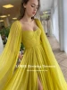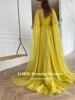 LORIE 2021 Vestidos de Fiesta de gasa de seda amarillo citrino, elegantes, con capa larga, línea A, escote Corazón, plisado, abertura en la pierna, vestidos de noche