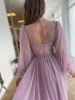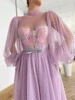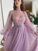 Vestido de fiesta Formal de manga larga con estampado de lunares, traje de fiesta con cuello alto de lavanda, con apliques coloridos, de tul y té