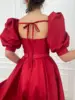 LORIE Vestidos cortos de fiesta de boda con bolsillos, vestido rojo elegante, mangas abotonadas con abertura frontal y bolsillos