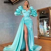 Fivsole vestido de noche de satén azul claro para mujer, formales largos vestidos de fiesta, mangas Arabia Saudí, largo, 2021