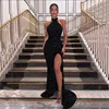 SoDigne negro vestidos de baile con lentejuelas Halter Sexy camiseta sin mangas de Split de talla grande Dubai largo traje Formal de noche para las mujeres
