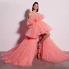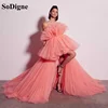 SoDigne Rosa Hola baja de tul vestidos de noche con tren largo las mujeres Formal de baile de graduación vestidos Puffy Fluffy vestido para fiesta de graduación 2021