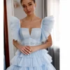 Vestidos escalonados De pastel en forma De corazón, tul azul cielo, con volantes, De noche, De fiesta, a medida