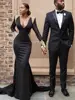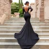 Satén negro profundo De cuello en V manga larga Vestidos noche Aplique De encaje sin espalda Vestidos sirenas para graduación hecho a la medida Vestidos De Fiesta