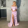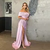 SoDigne vestido de noche largo de satén suave para mujer, vestido de fiesta plisado sin hombros, elegante, con abertura lateral, vestidos formales de graduación, color rosa, 2021