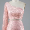 Vestido rosa de lentejuelas para mujer, Vestido ajustado de un hombro con purpurina para graduación, Vestido corto de noche para fiesta y Club