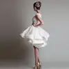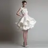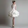 Elegante vestido blanco de fiesta de graduación con apliques de encaje, vestido de noche escalonado con volantes, hecho a medida, sin mangas, Mini vestido de fiesta de mariee