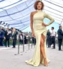 Vestido plisado de sirena para señora, prenda elegante de manga larga con cuello alto y un hombro al descubierto, con abertura elástica