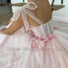Vestido De fiesta De tul con cuello cuadrado para niña, sin mangas, línea A con apliques, tren De cepillo, personalizado, 2021