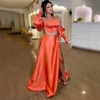 Vestidos de Fiesta de talla grande para mujer, vestido de fiesta Formal de manga larga con hombros descubiertos y abertura lateral alta de satén naranja